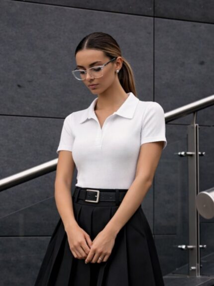 Бела блуза со црвени риги
