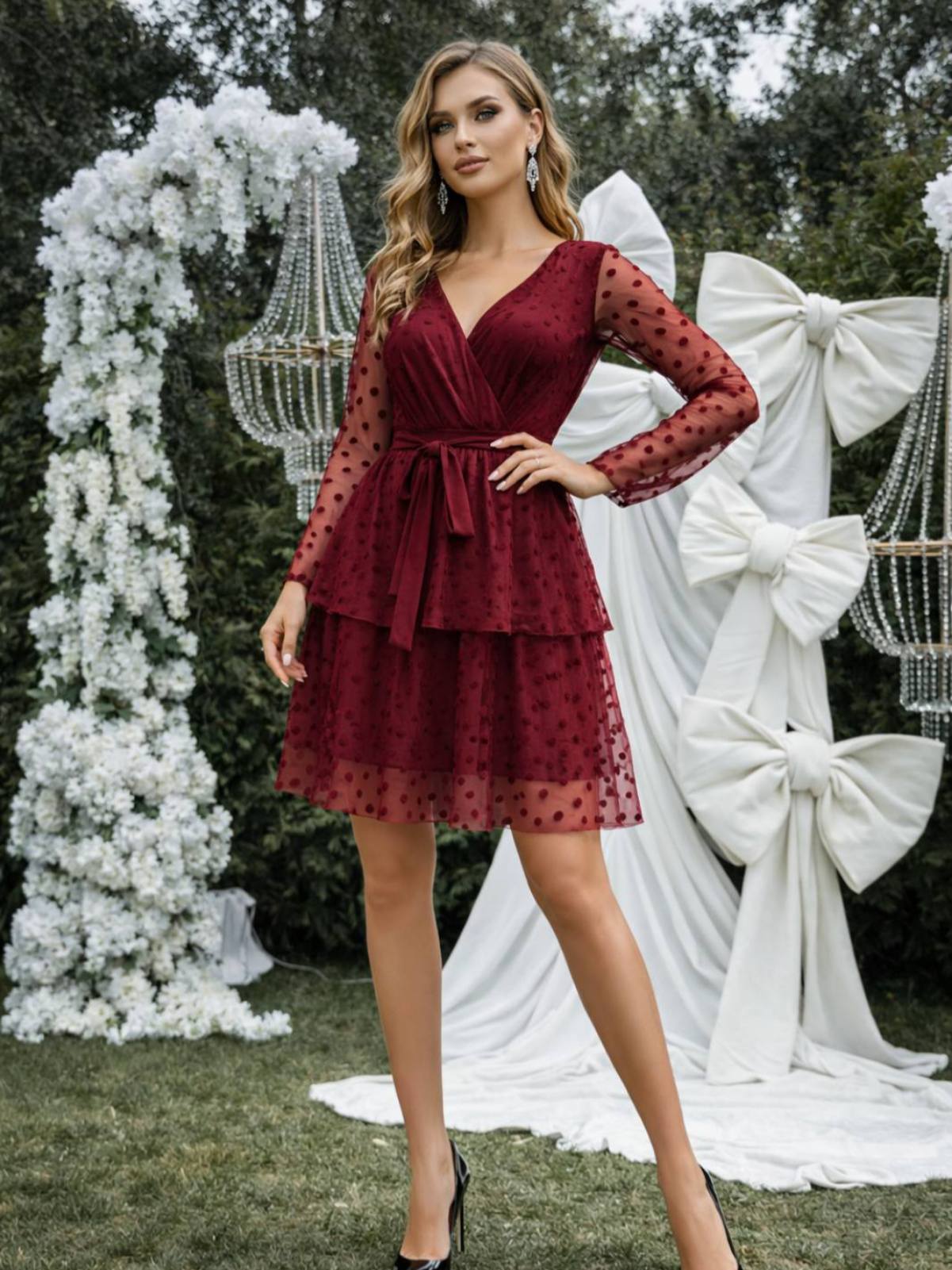 Бордо миди фустан со тул