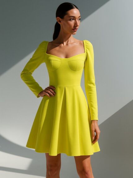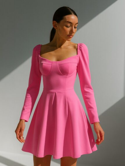 Еднобоен фустан со долги ракави