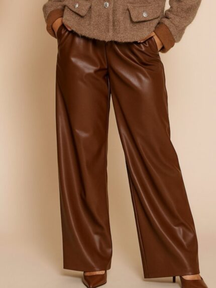 Еднобојни панталони со кафен колан