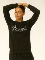 Памучна блуза со натпис Beautiful на предната страна. Долг ракав кој завршува со ластик. Округлест изрез и ластик на долниот дел на половината.