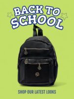 Голем ранец од вештачка кожа со една голема преграда и 3 помали прегради. Закопчување со метален патент со декоративни цветови.